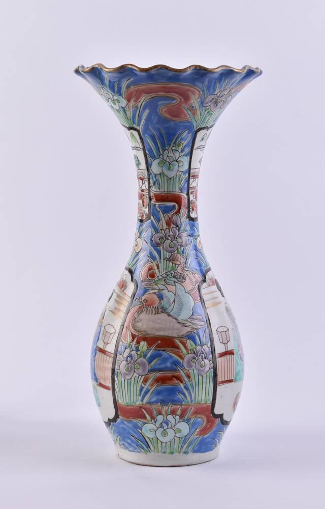 farbig und gold staffiert, unterm Stand eisenrote 6 Zeichen Bodenmarke, H. 31 cm