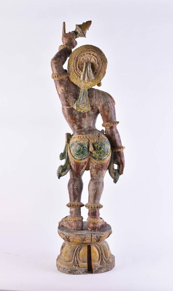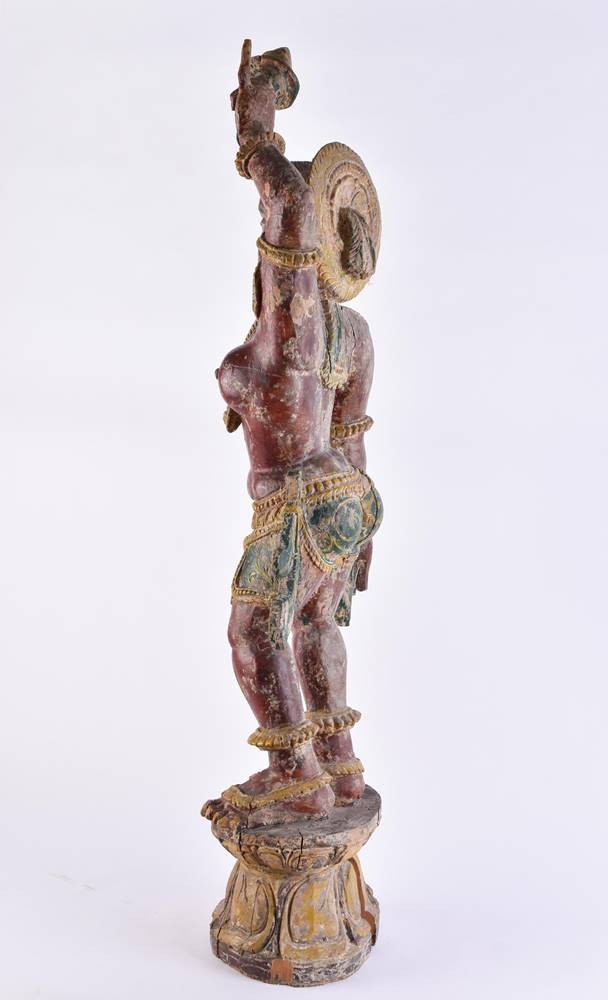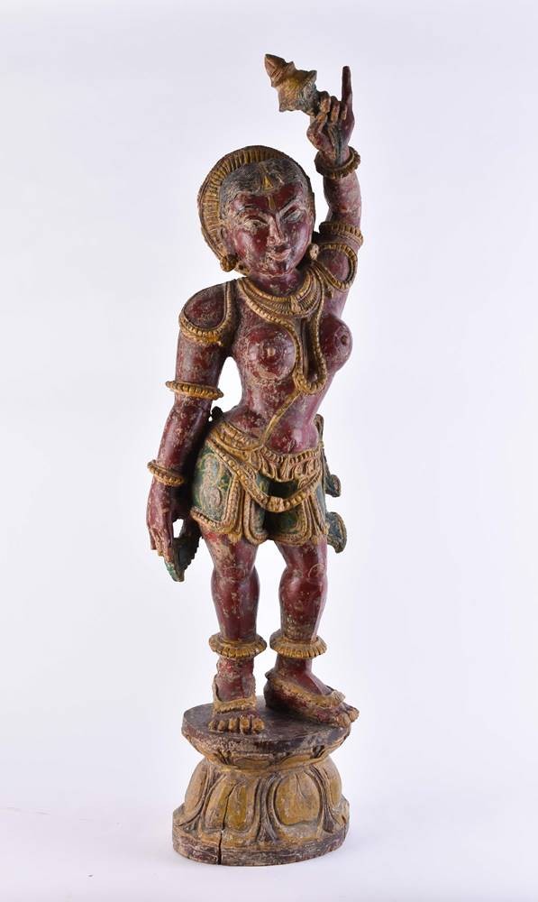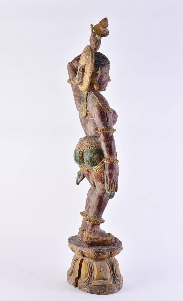 Holz, farbig gefasst, auf Lotussockel stehend, H: 93 cm