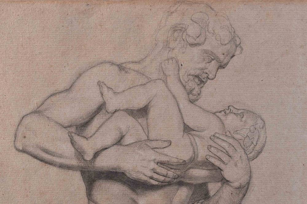 "Silenus- Studie mit Bacchus Kind im Profil",