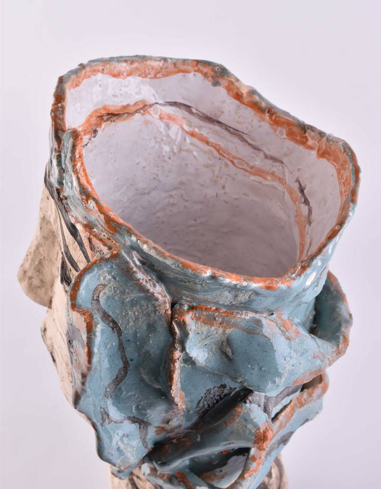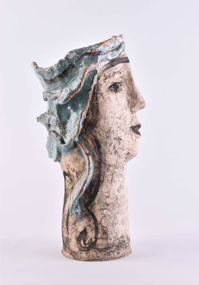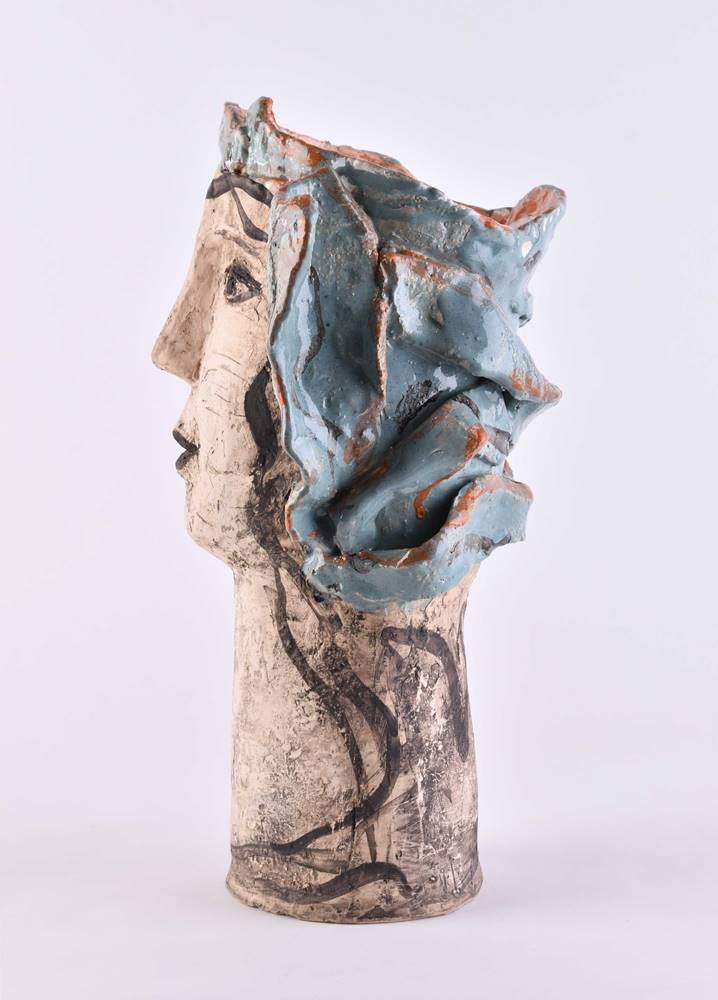 Kopf als Vase- Keramik, glasiert, farbig gefasst, H. 34,5 cm