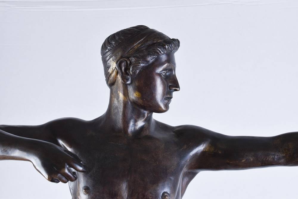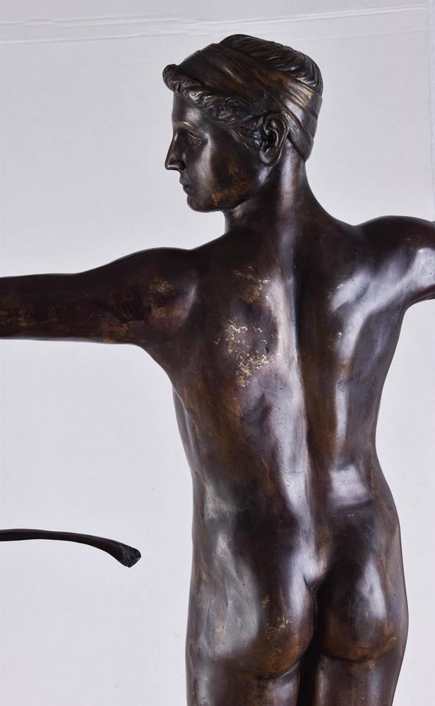 Skulptur- Bronze, Höhe ohne Bogen 97 cm, mit Bogen 115,5 cm, Gesamthöhe mit Postament 120 cm