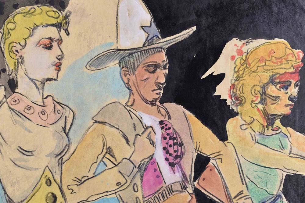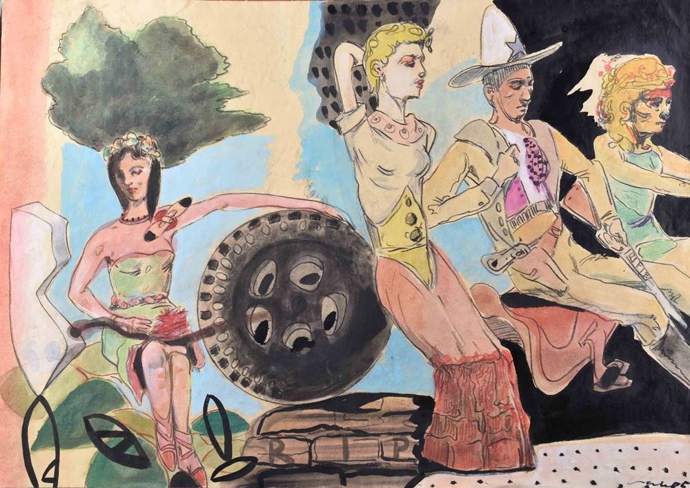 Aquarell- Mischtechnik auf dünnem Karton, 49,5 cm x 70 cm,