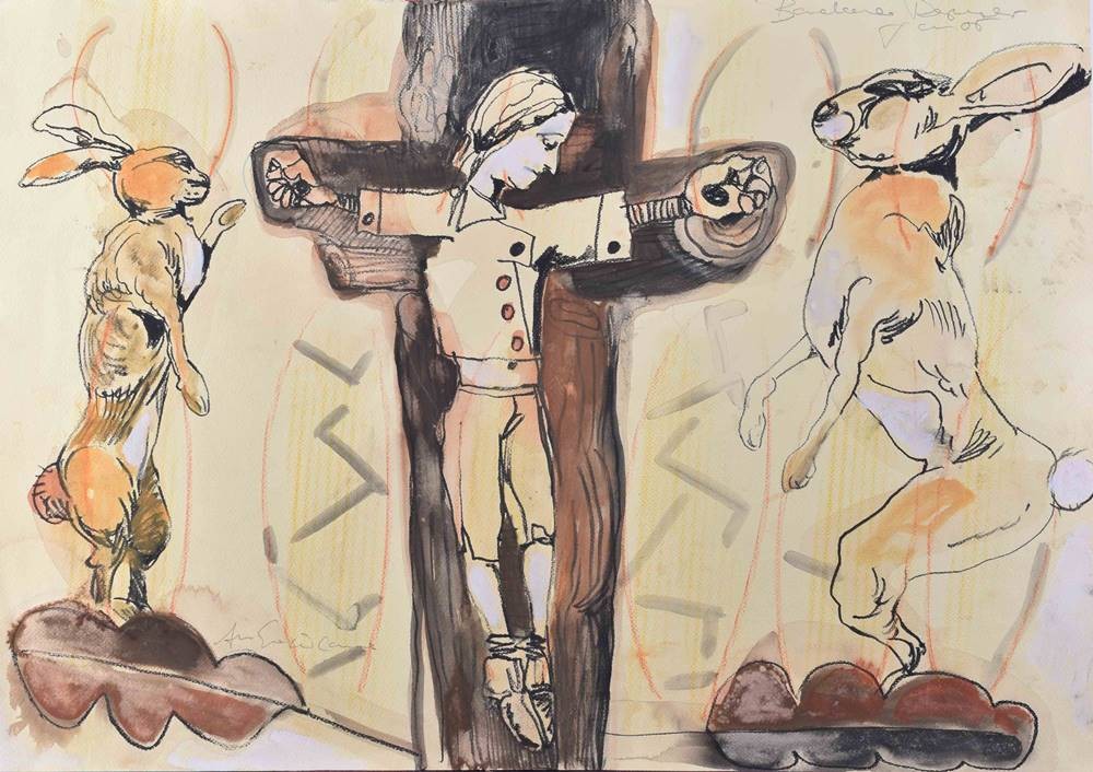 Aquarell- Mischtechnik auf dünnem Karton, 49,5 cm x 70 cm,