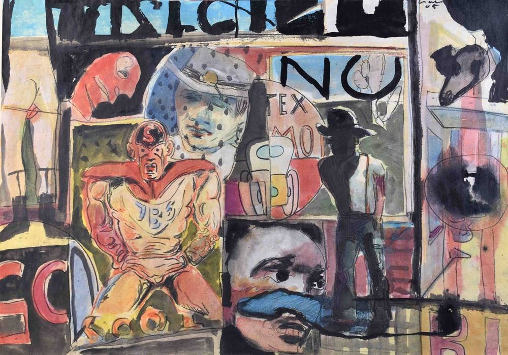 Aquarell- Mischtechnik auf dünnem Karton, 49,5 cm x 70 cm,