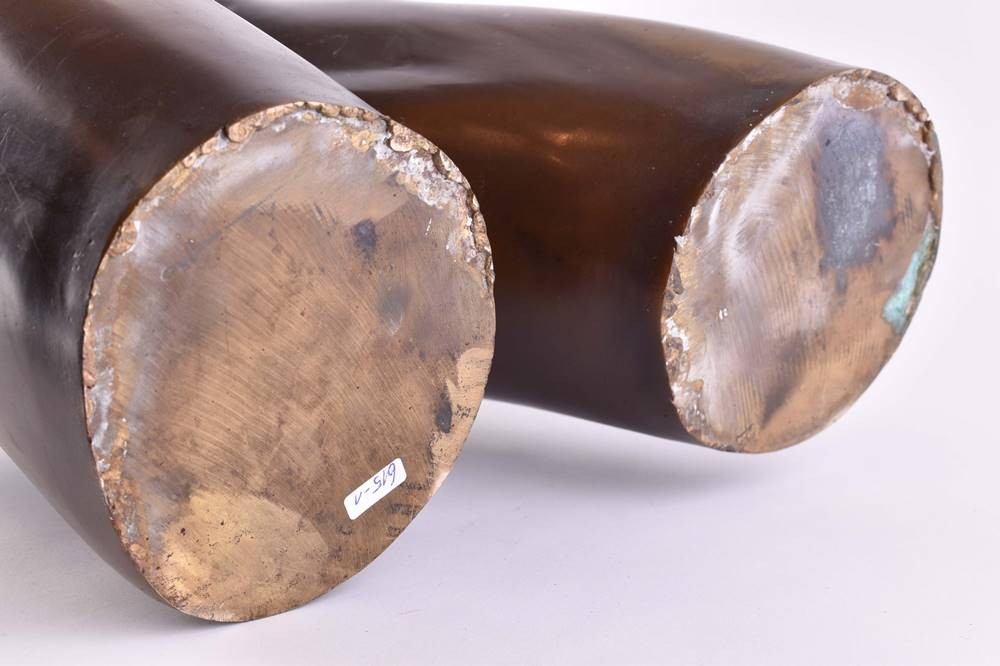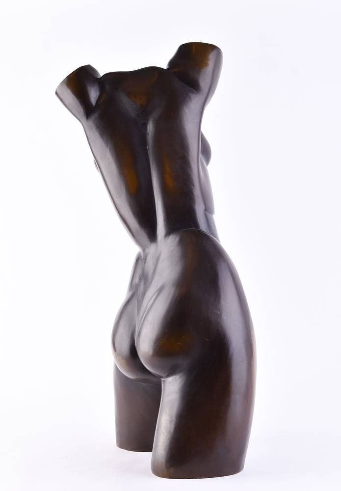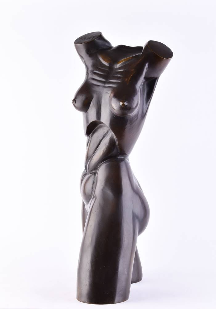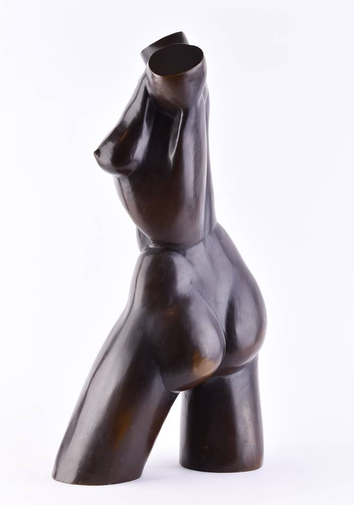 Große moderne Bronzeplastik des auf weibliche Aktfiguren Torsi und Tänzerinnen spezialisierten Bildhauers. Durch sorgfältig geglättete häufig polierte Oberflächen betonte er die haptischen erotisierenden Reize bzw. rief ein lebendiges Licht- und Schattenspiel hervor