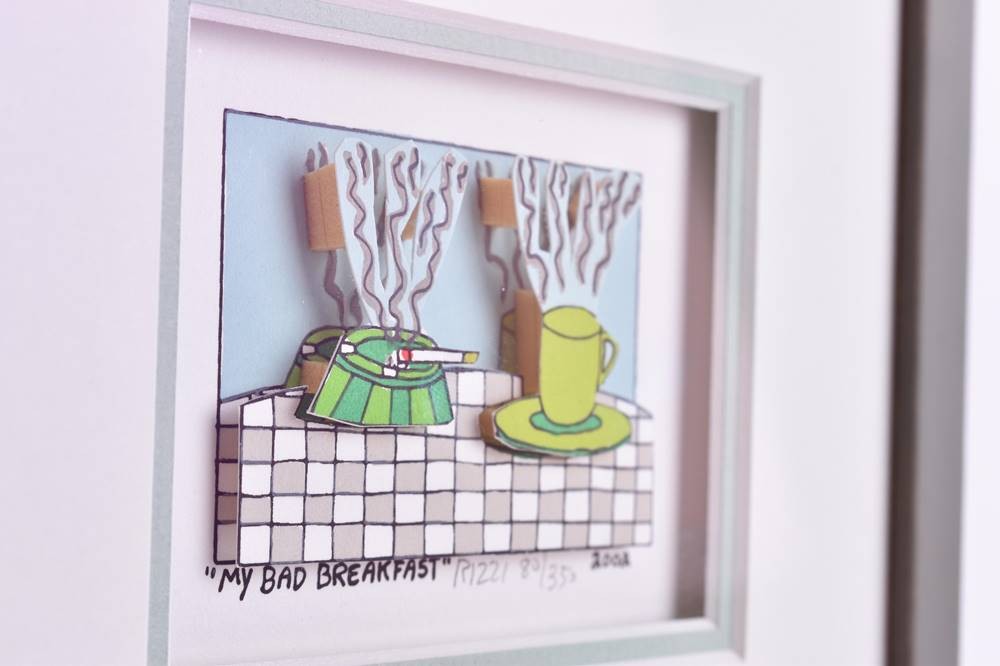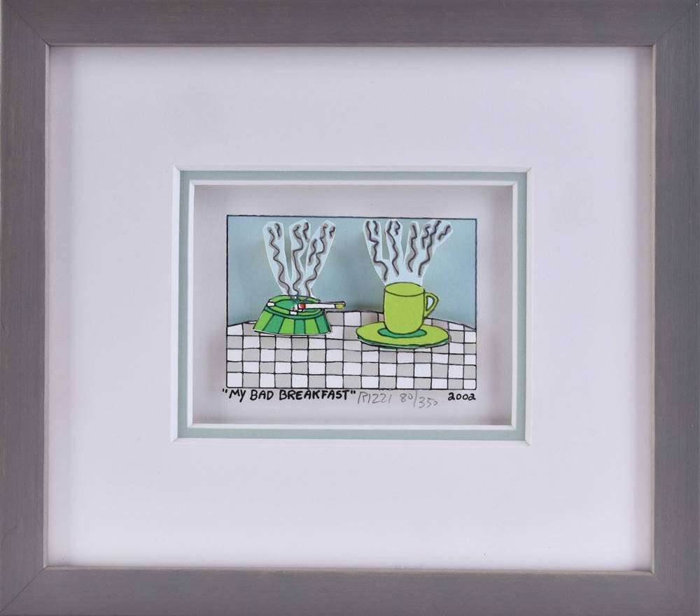 3 D Grafik- Farbserigrafie, Sichtmaß: 7,3 cm x 9,6 cm,