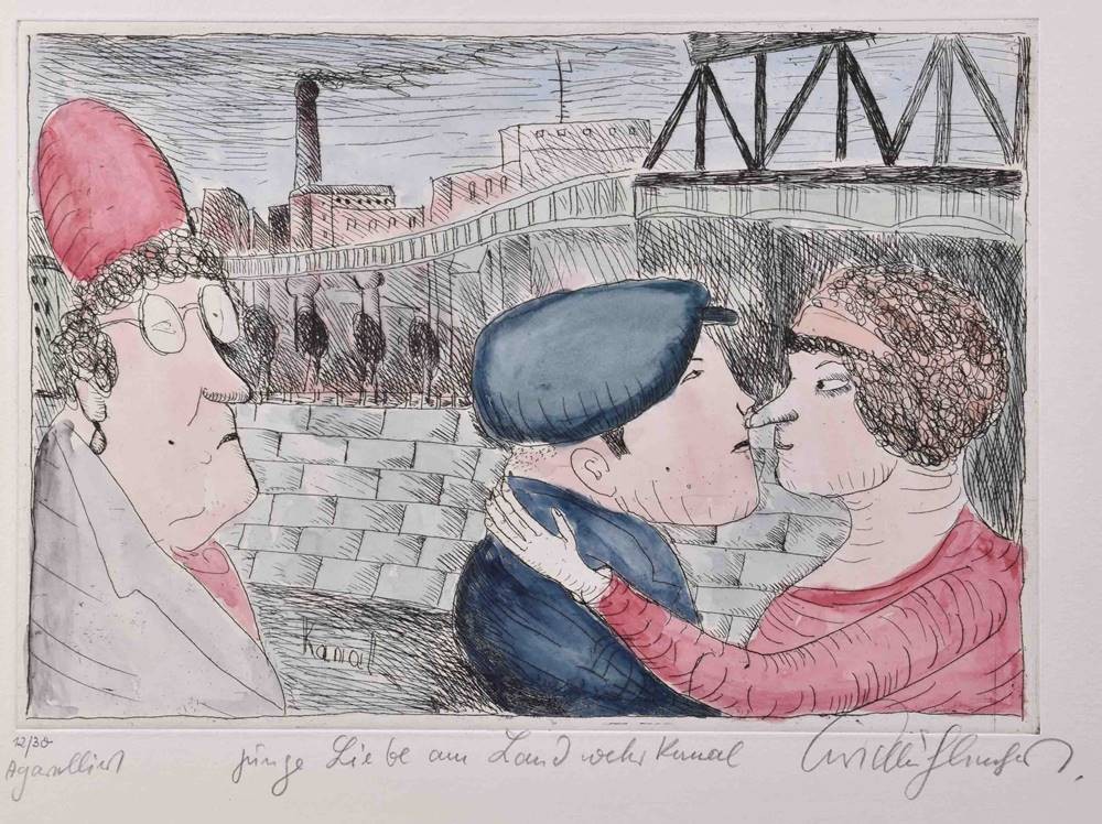 5 Grafiken- aquarellierte Farbradierungen auf Bütten, Blattmaß von 45 cm x 34 cm bis 53 cm x 40 cm,