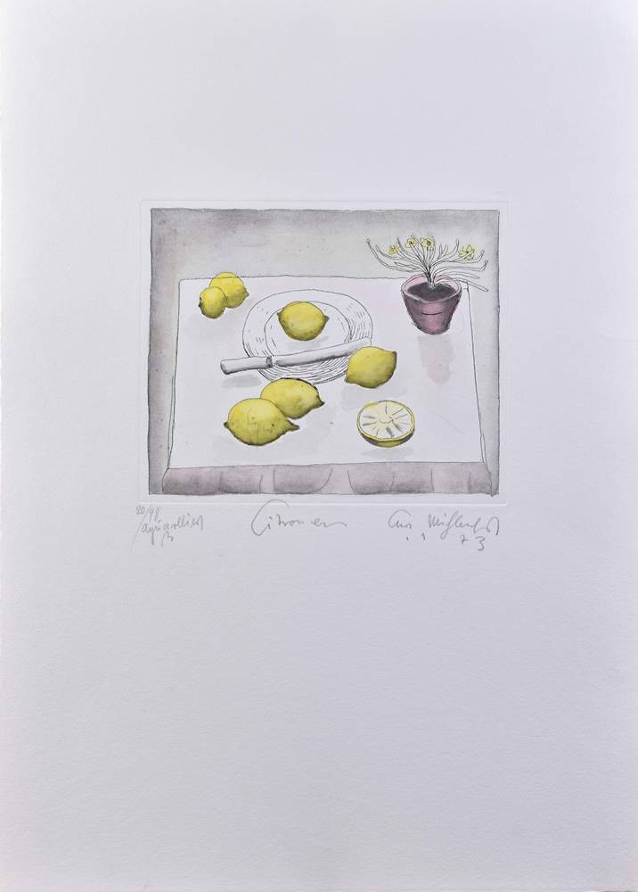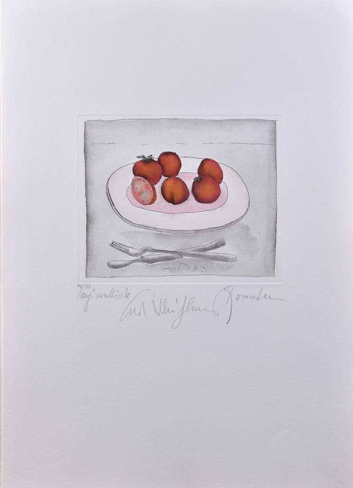 5 Grafiken- Farbradierungen auf Bütten (teils aquarelliert), Blattmaß von 53,5 cm x 37,5 cm bis 53 cm x 38 cm