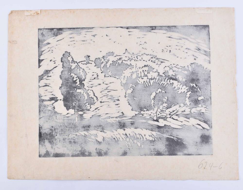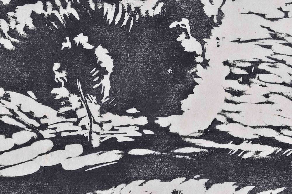 Grafik- Holzschnitt auf Bütten, 31,5 cm x 42,3 cm,