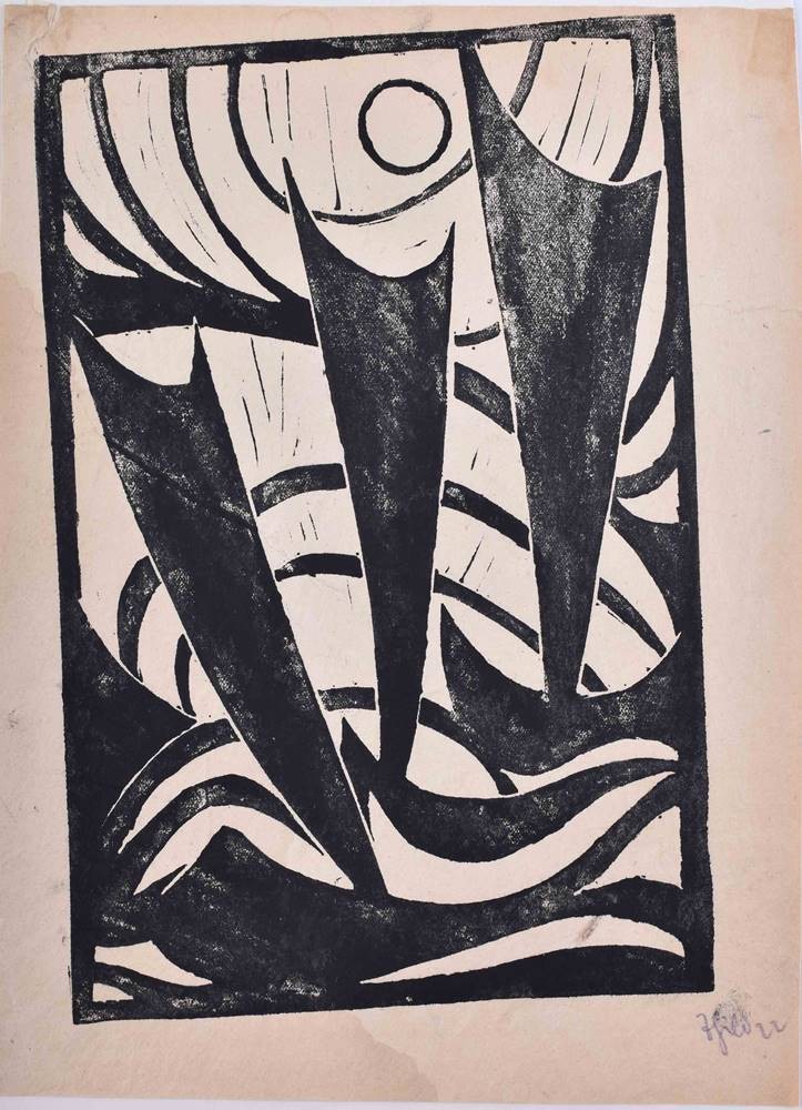 äußerst seltener Druck aus dem Entstehungsjahr 1922, die frühen Drucke sind Unikate oder in sehr wenigen Stücken abgezogen, außerhalb der Darstellung hat das Blatt einige Läsuren, Blatt etwas fleckig