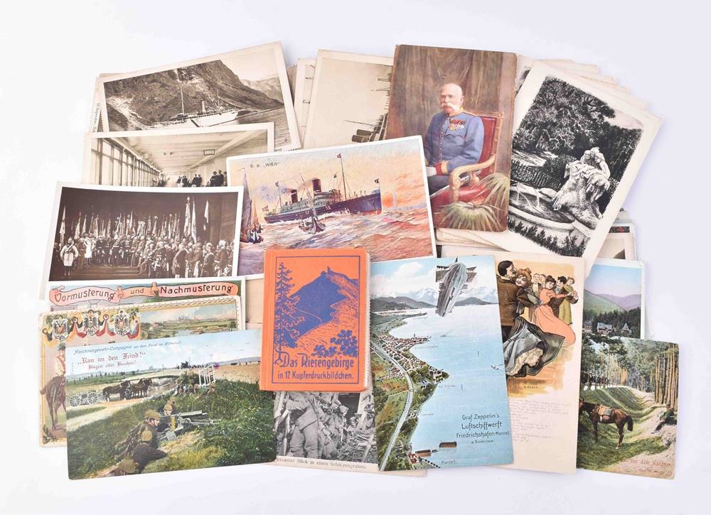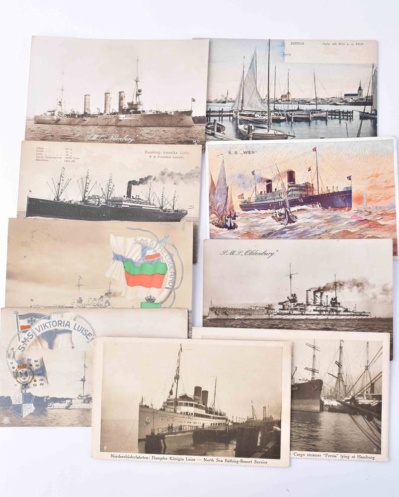 42 Stück um 1900 bis 1936, davon 12x Schiffe, 11x Militaria, 1x Zeppelin und 19 Zugaben, insgesamt gute Erhaltung