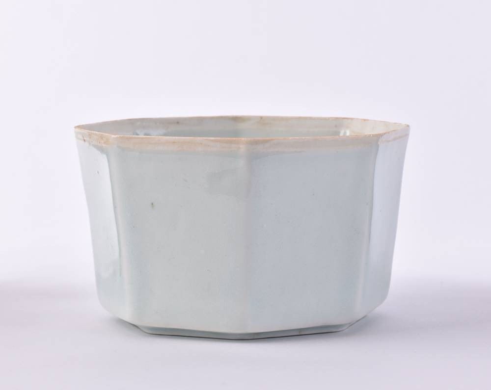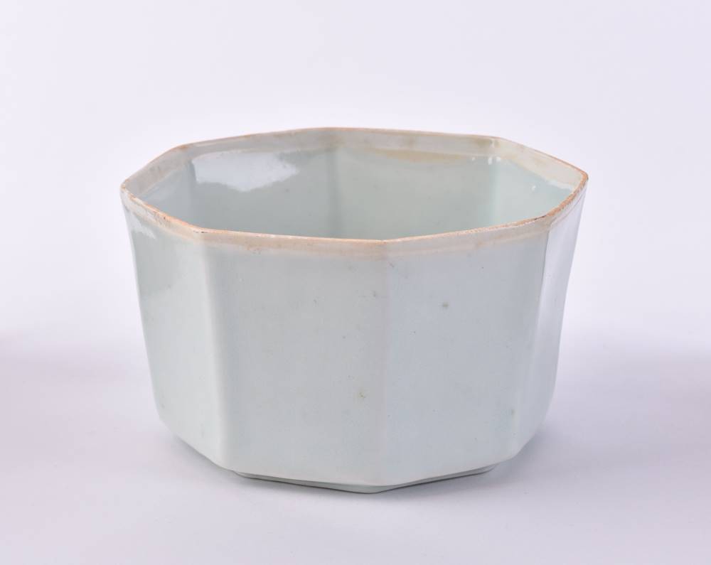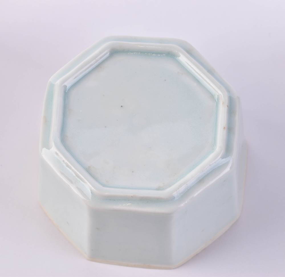 Porcelain, octagonal, celadon-coloured, glazed, ht: 7.3 cm Ø 12.3