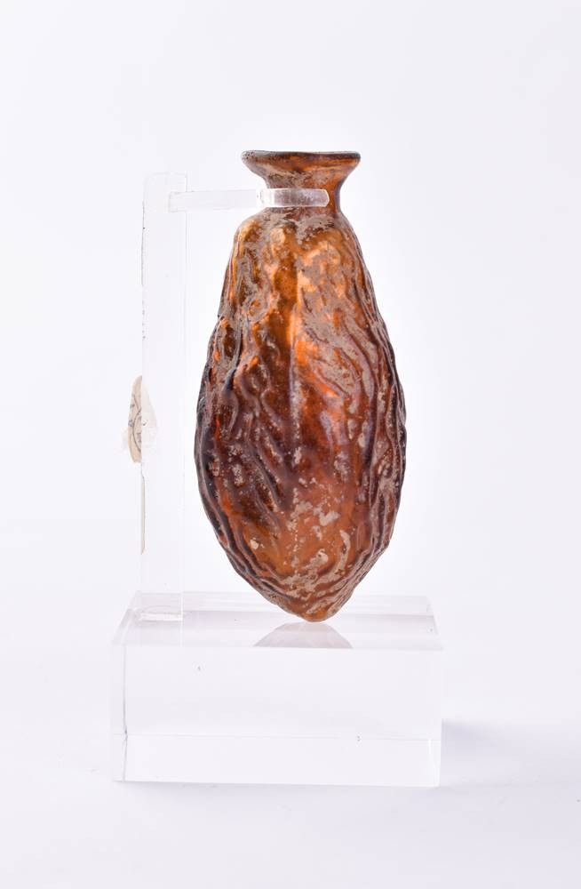 probably Arabic, 4th-5th century, amber-coloured, with find coating, very well preserved, ht: 7 cm