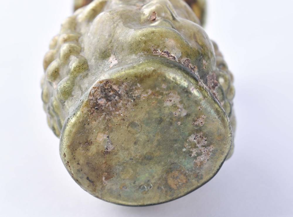 Byzantine, green, with female heads on both sides, found coating, in very good condition, ht: 8 cm