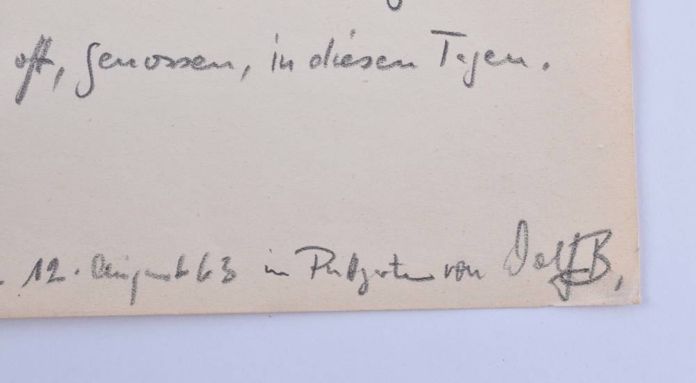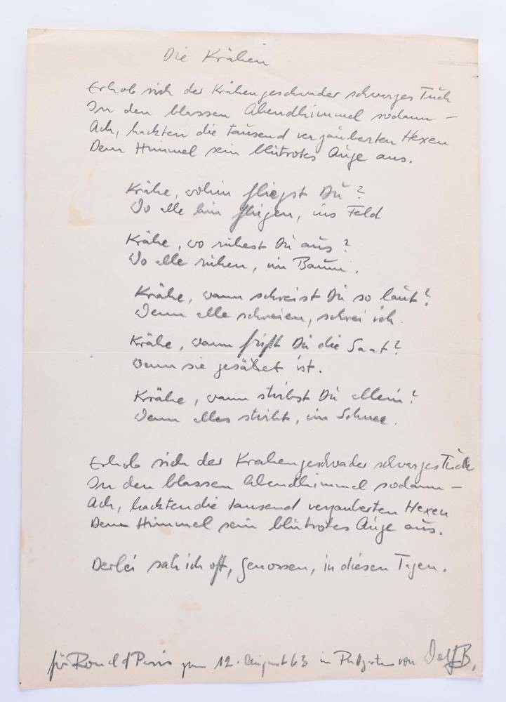Original manuscript of the poem, handwritten with personal dedication to Ronald Paris dated 12 August 1963, signed Biermann
