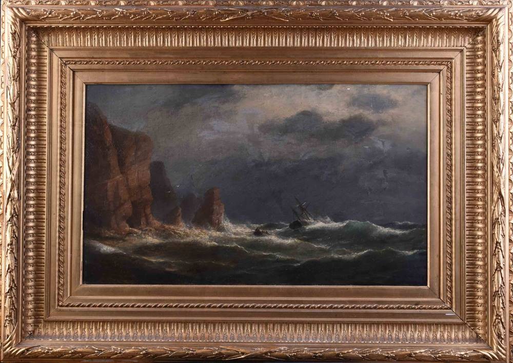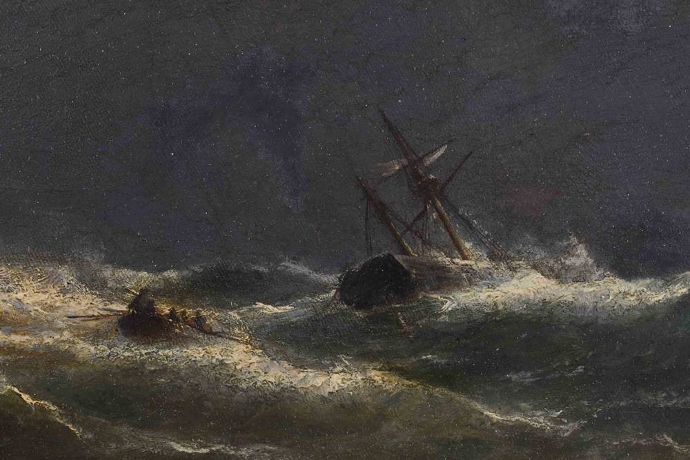 "Capsizing sailing ship in rough seas"