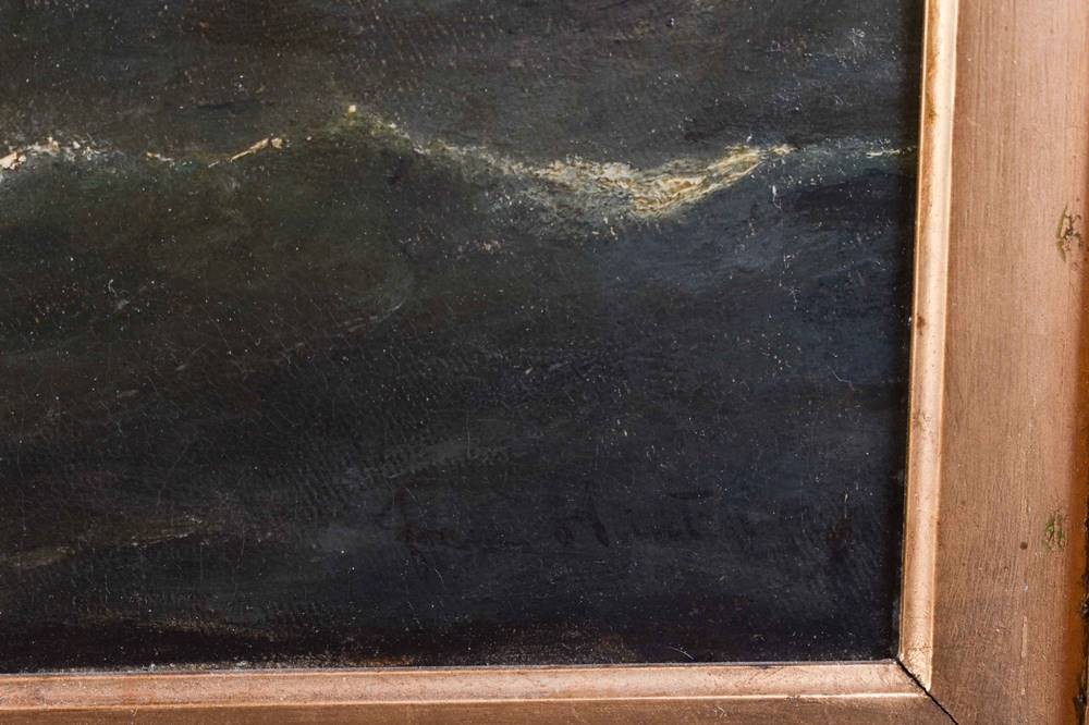 Painting- oil on canvas, 38 cm x 64.5 cm, framed in a magnificent frame (frame somewhat damaged), 67 cm x 93 cm,