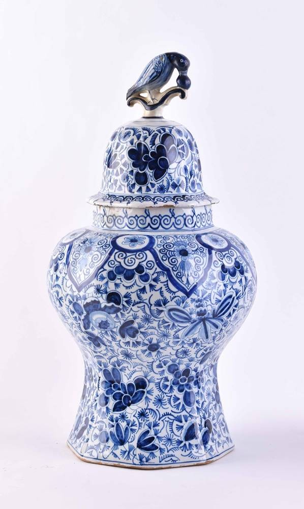 Lot 78 - Fayence lidded vase Delft, 17th/18th century