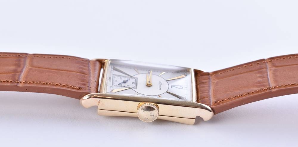 Very well preserved Art Deco Tank, 585 yellow gold, manual winding, reference number: 24990, watch starts, 3.5 cm x 2 cm
