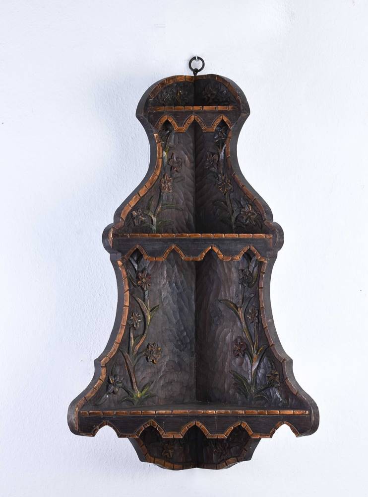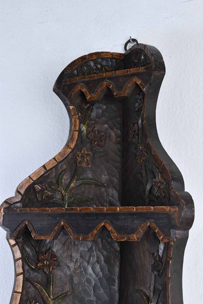 Wood, the insides hand-carved with floral decor, partly colorfully painted