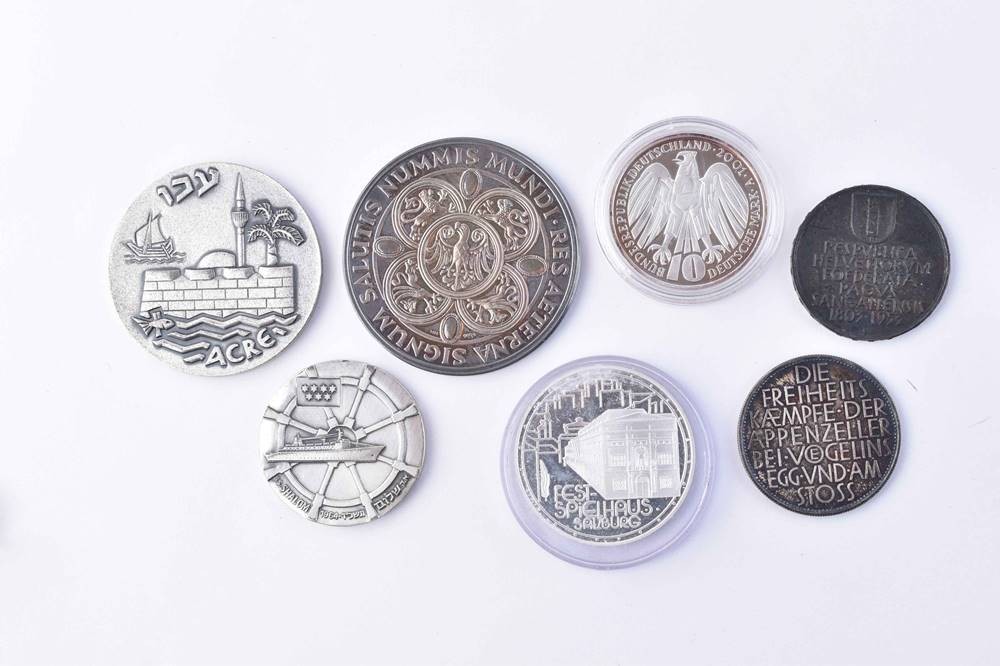 including 500 Schilling 91, 10 DM 2001, 2 medals sweat 1953, etc., excellent, approx. 187 g. Fine silver