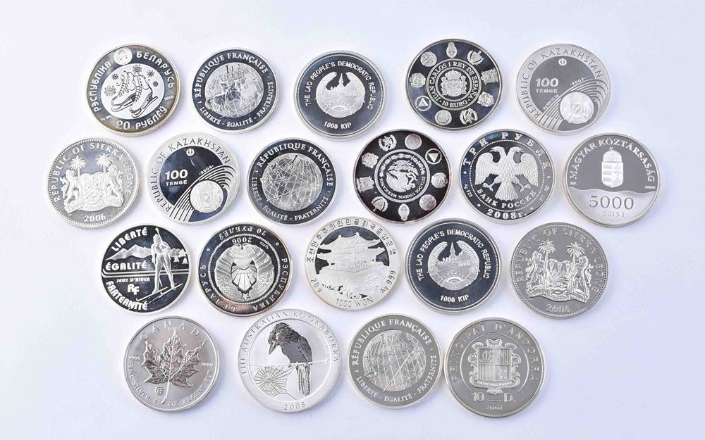 18 pieces, including one Andorra, 2x Belarus, 4x France, 2x Kazakhstan, 1x China, 2x Laos, 1x Mexico, 1x Russia, 1x Spain, 2x Sierra Leone, 1x Hungary, proof and uncirculated, total weight: 492 grams