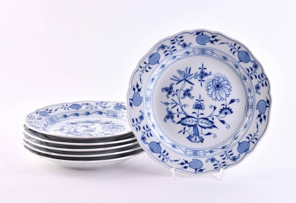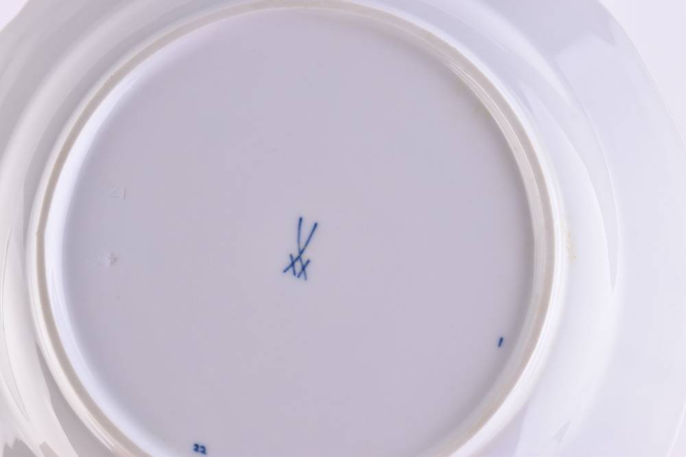 Porcelain, colorfully painted, onion pattern decor, swords mark, deputation and 3 grinding strokes, Ø 20 cm
