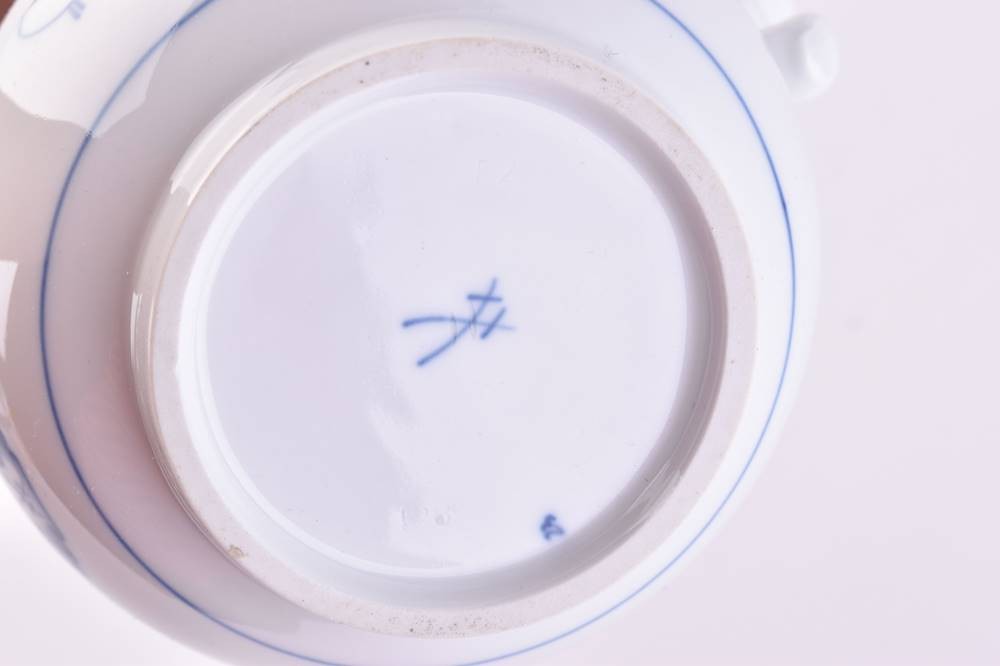 Porcelain, decor onion pattern, swords mark, 2nd choice, ht: 23.5 cm