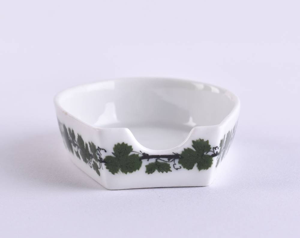 Porcelain, decor vine leaves, blue crossed swords mark, horseshoe shape, 2 cm x 7.5 cm x 6 cm, 1st choice