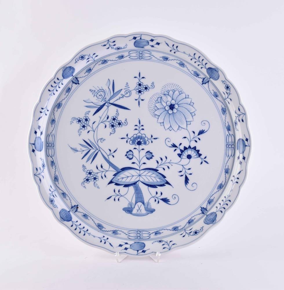 Porcelain, decor onion pattern, swords mark, 3 grinding strokes, ht: 3.5 cm, Ø 39.5 cm