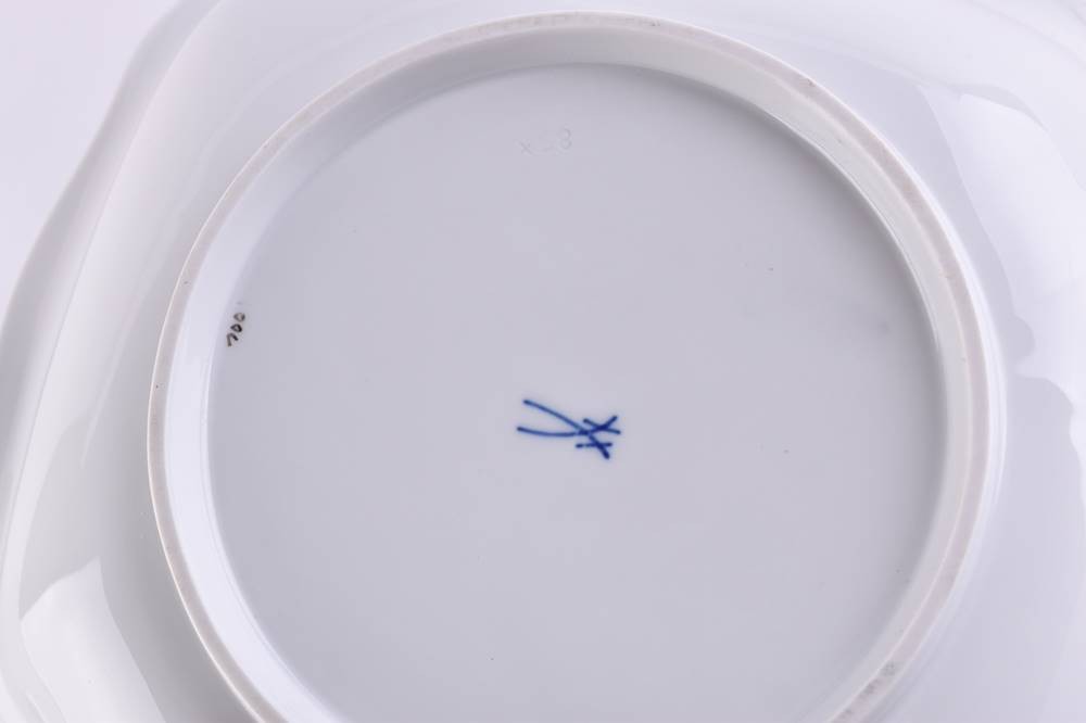 Porcelain, decor vine leaves, blue crossed swords mark, 2 grinding strokes, 6.5 cm x 22 cm x 22 cm