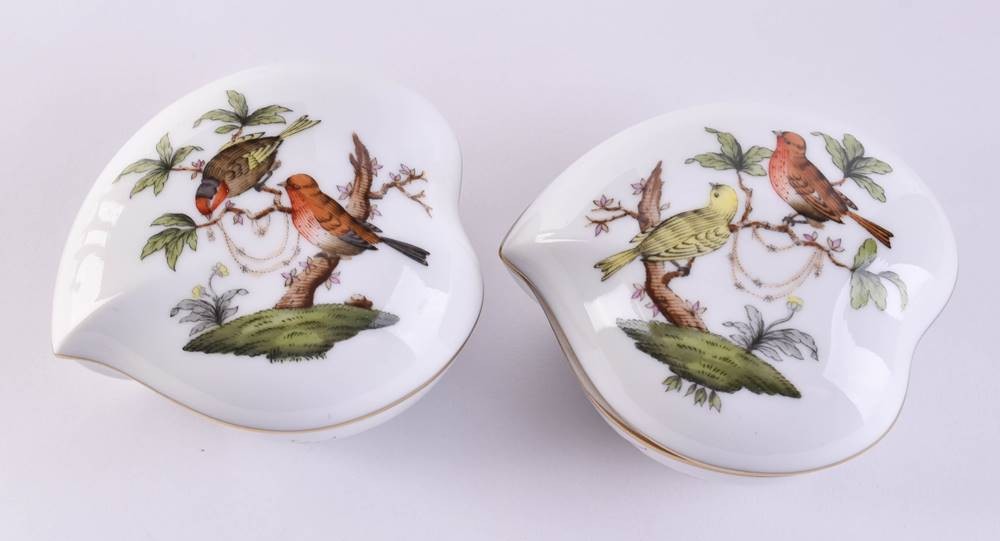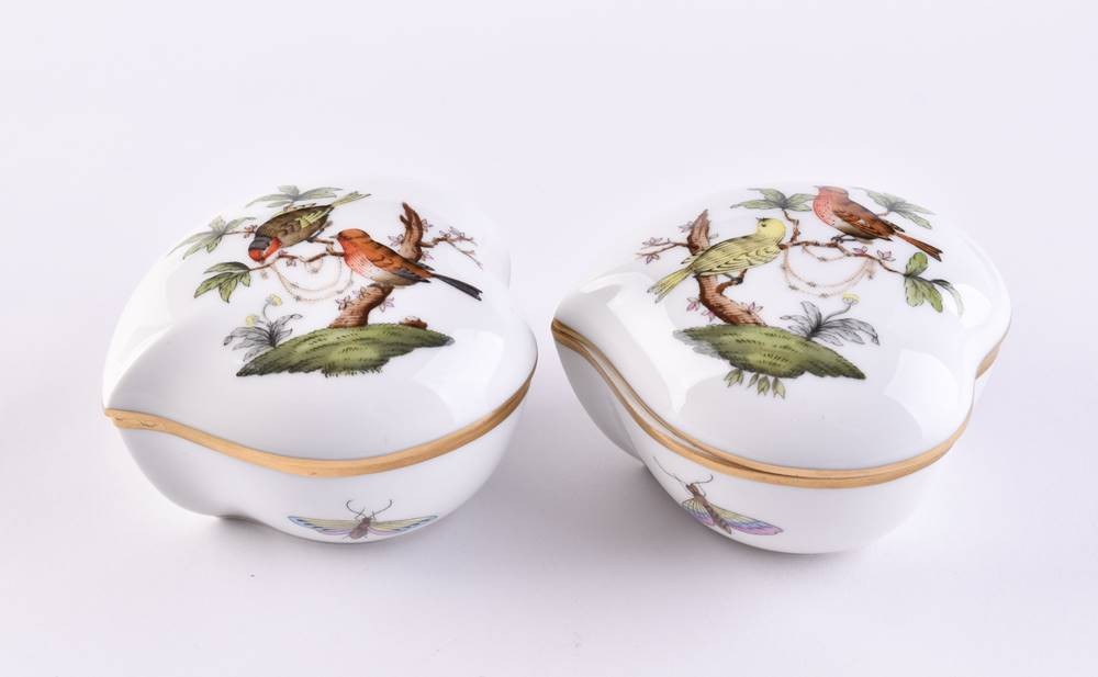 Porcelain, colorfully painted and gold decorated, heart-shaped, Rothschild decor, 5.5 cm x 7 cm x 6 cm, with bottom mark, 1st choice