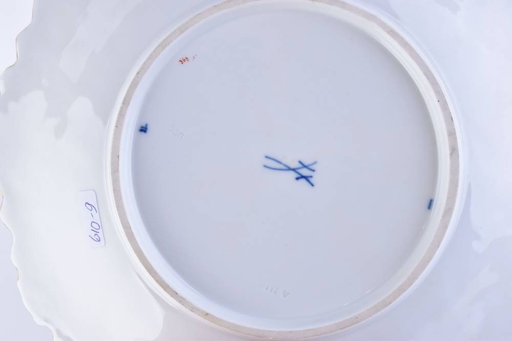 Porcelain - colorfully painted and richly gold decorated, floral painting in the mirror, blue crossed swords mark, two grinding strokes, Ø 22.5
