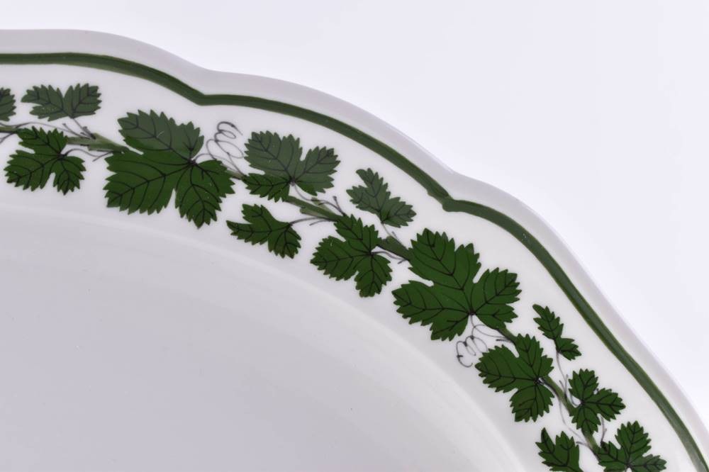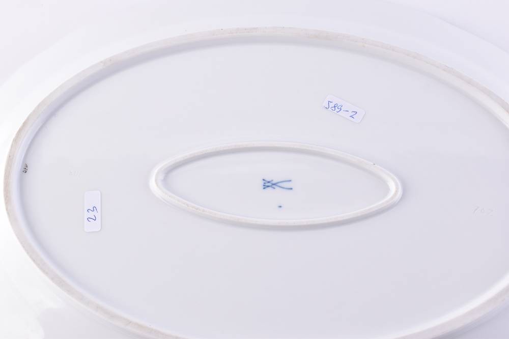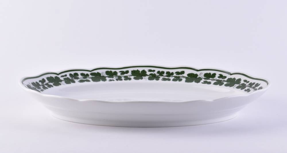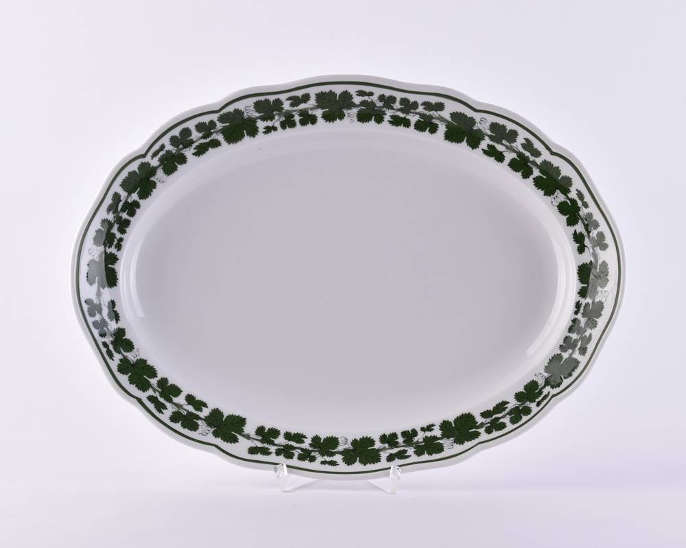 Porcelain, decor vine leaves, blue crossed swords mark, two grinding strokes, height 4.5 cm x 36 cm x 26 cm