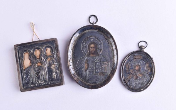 3 pieces, silver 84 Zolotnik, oval 7 cm x 5.5 cm and 5 cm x 3.5 cm, 1 rectangular 5 cm x 4.7 cm,