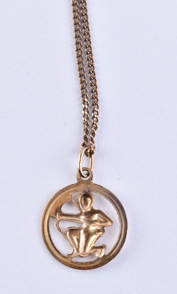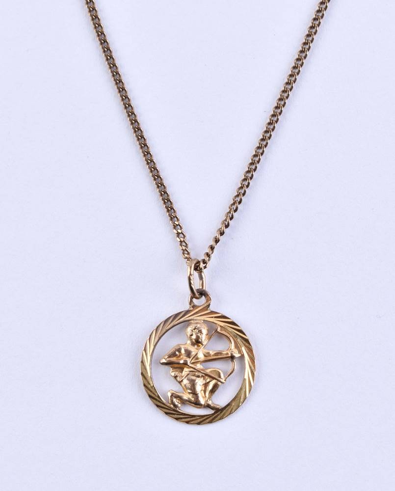 Yellow gold 333/000, chain length approx. 50 cm, zodiac sign Sagittarius pendant, Ø 20 mm, total weight approx. 5.5 g