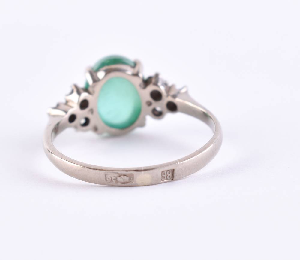 Platinum, tested and hallmarked, natural emerald approx. 1 ct, brilliant-cut diamonds approx. 0.2 ct, ring size 53, total weight approx. 2.2 g.