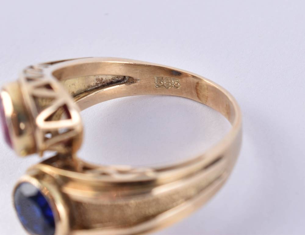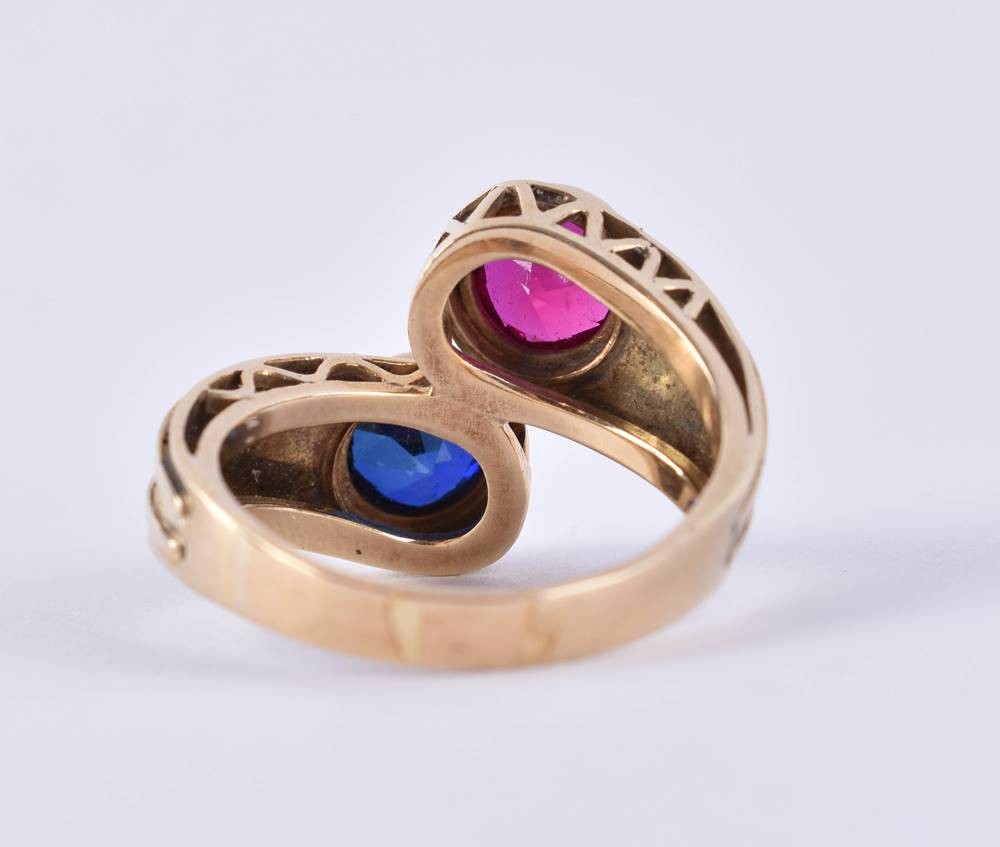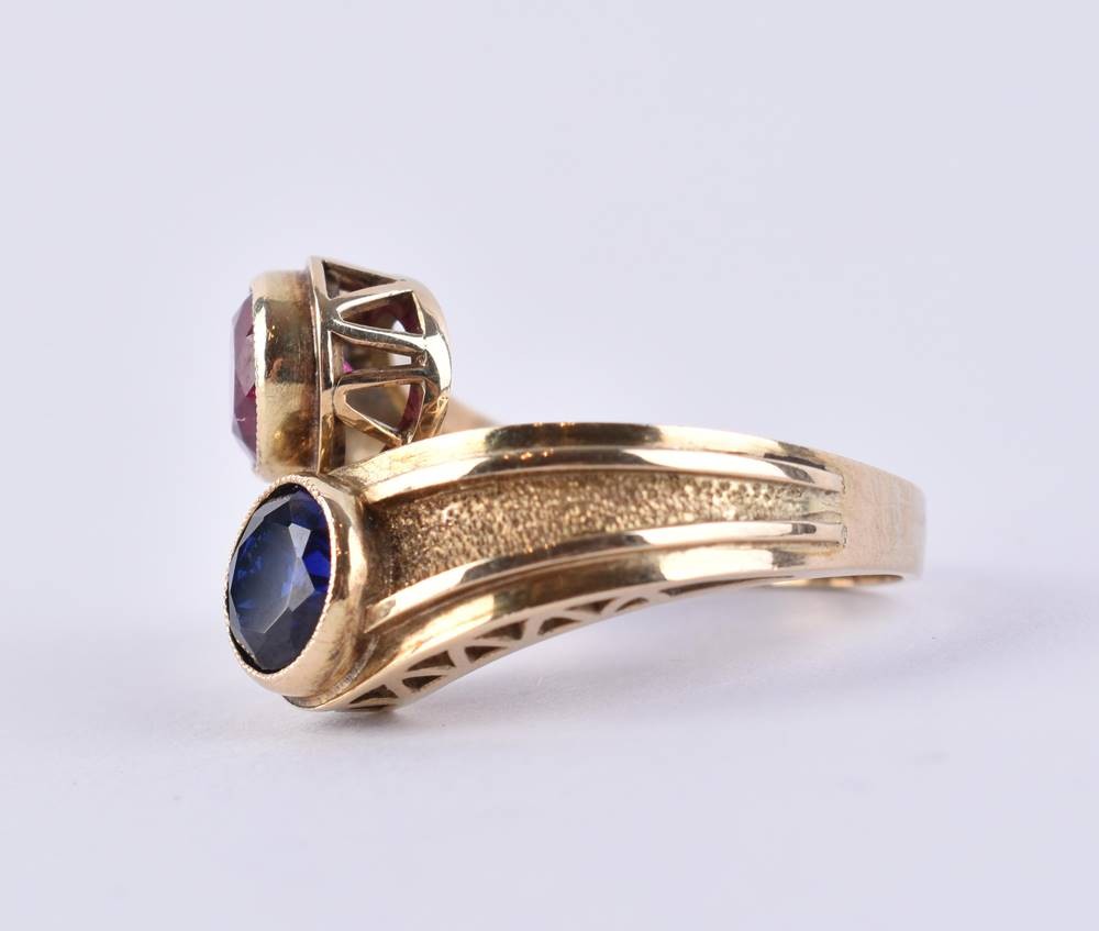 GG 585/ 000, sapphire and ruby each approx. 0.70 ct, ring size approx. 56, total weight approx. 7.2 g