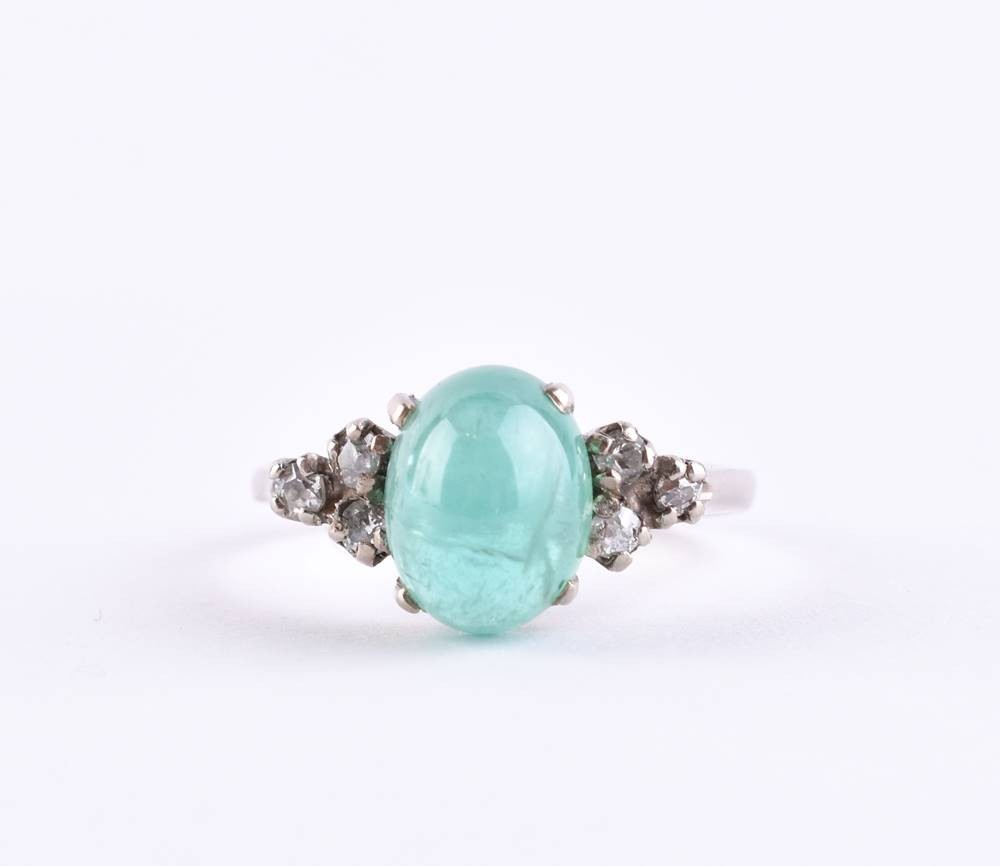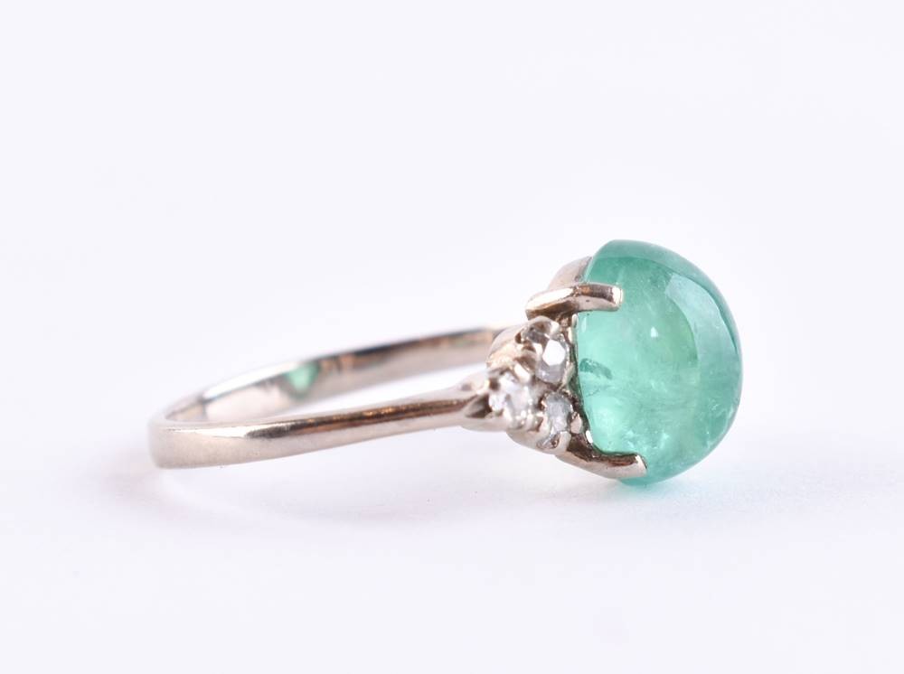 Platinum, tested and hallmarked, natural emerald approx. 1 ct, brilliant-cut diamonds approx. 0.2 ct, ring size 53 , total weight approx. 2.2 g.