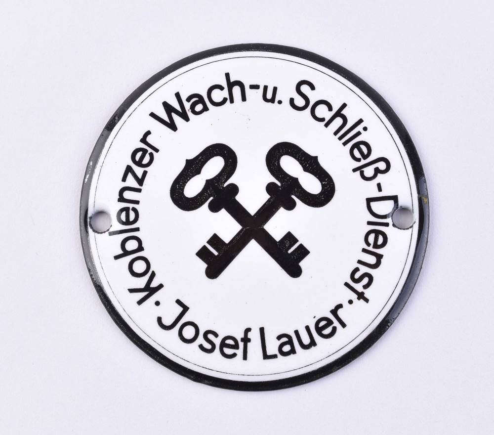Lot 188 - Old advertising sign Koblenzer Wach- u. Schließdienst, Josef Lauer