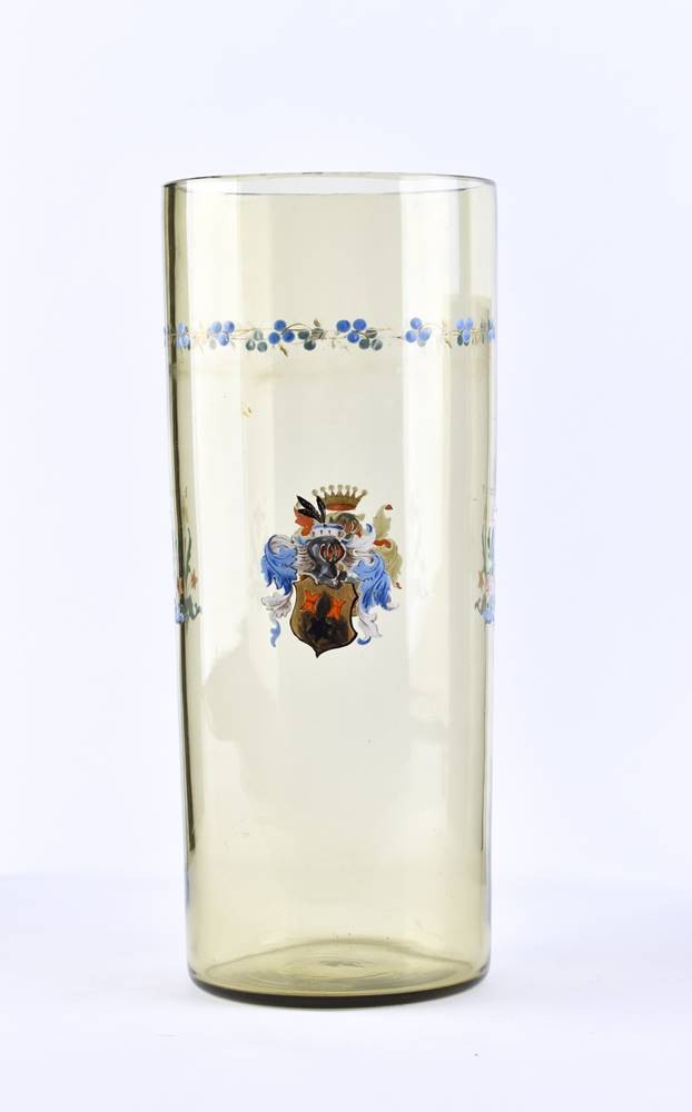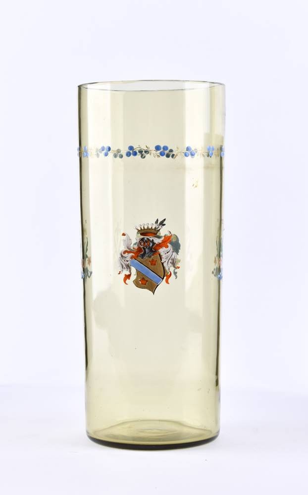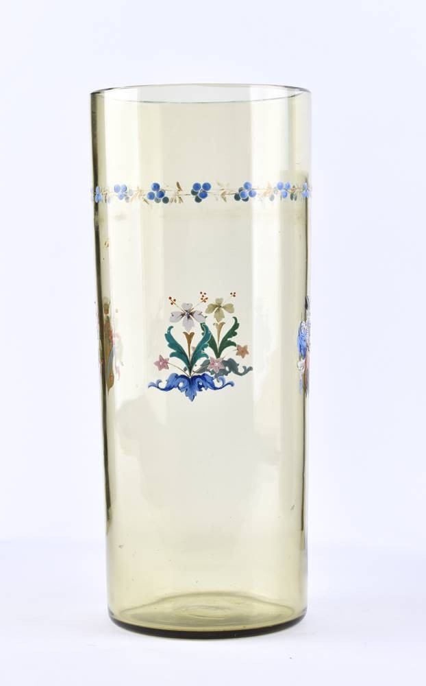 Glas, mit opaken Emailfarben bemalt und vergoldet, H: 24 cm