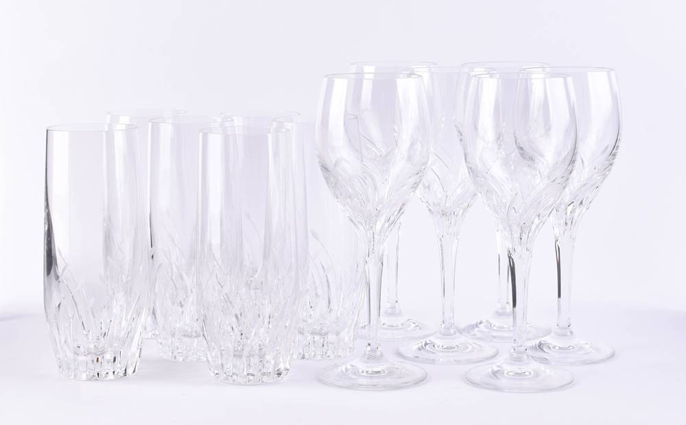 12 Stück: 6 Weingläser (H. 19,5 cm), 6 Saftgläser (H. ca. 16 cm),