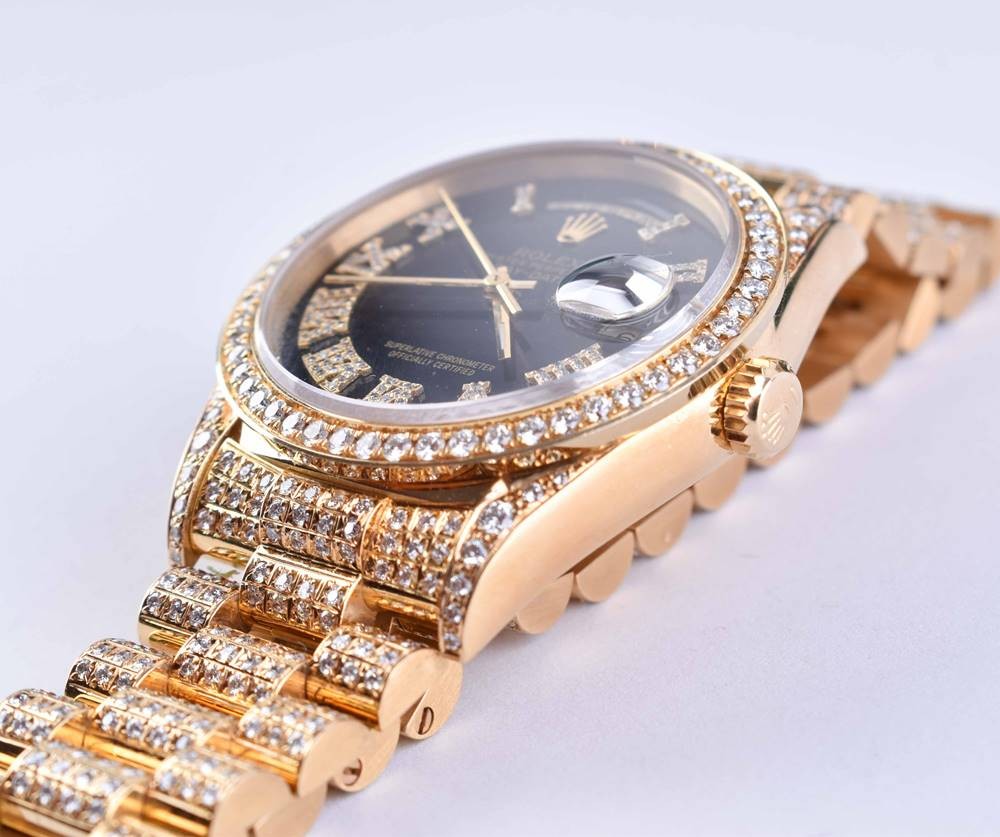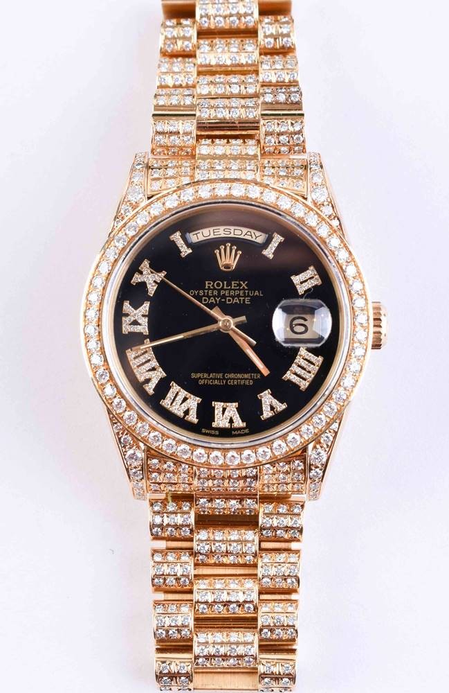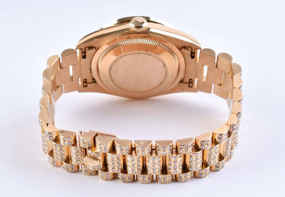 750 Gelbgold, Armband 750 Gelbgold, mit 10 ct. besetzt mit 10 ct. Brillianten, Farbe D, Reinheit vvs, Automatik, Saphirglas, Referenznummer: 18238, Gehäusenummer: E842046, ungetragen, full set, ⌀ 36 mm