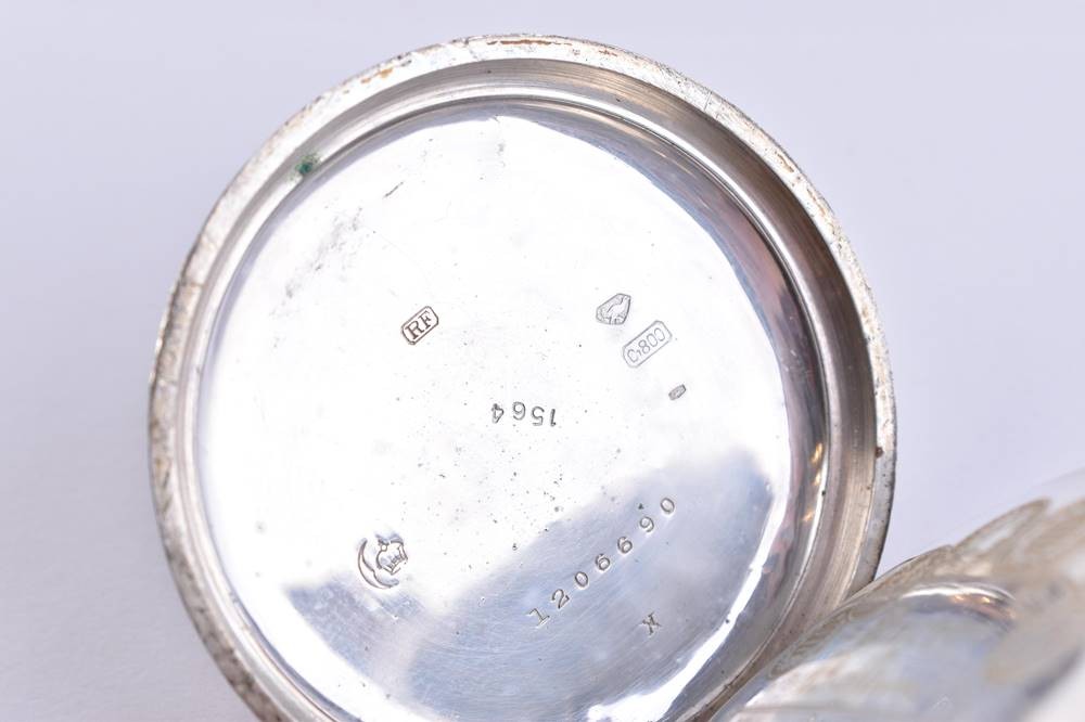 Gehäuse Silber 8000/000, Emaille- Ziffernblatt mit Arabischen Zahlen, Ø ca. 50 mm, Funktion nicht geprüft, Gesamtgewicht ca. 81 g.
