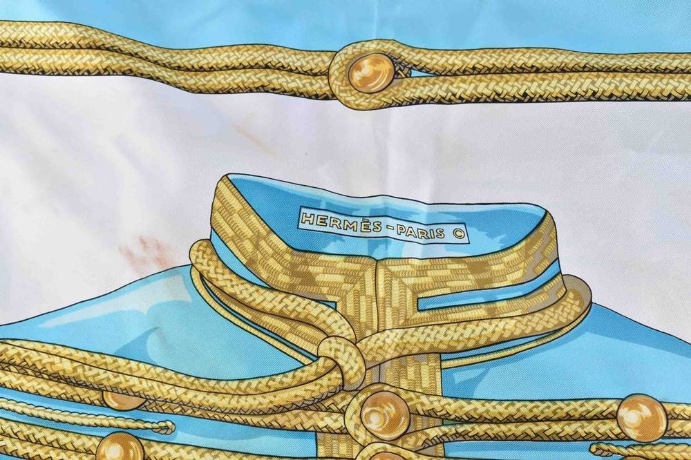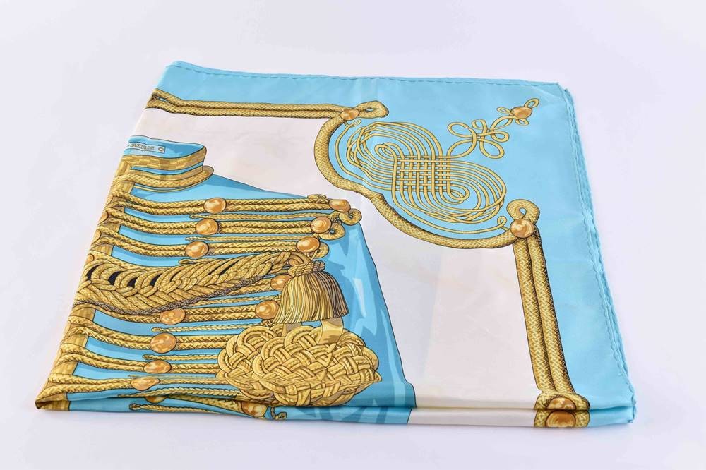 Material: feinstes Seidentwill und handgerollte Kanten, Designer: Cathy Latham, ca. 90 cm x 87 cm, partiell einige Make- Up Spuren
