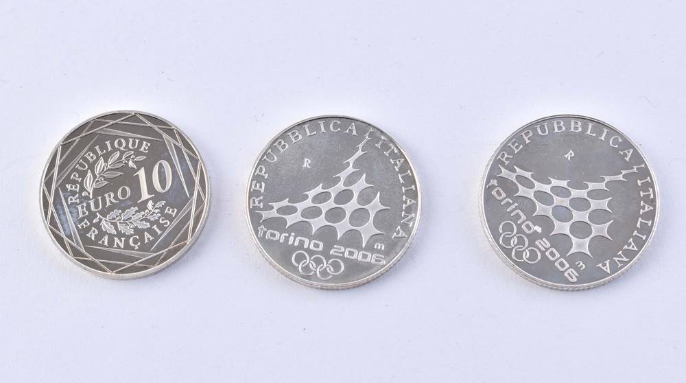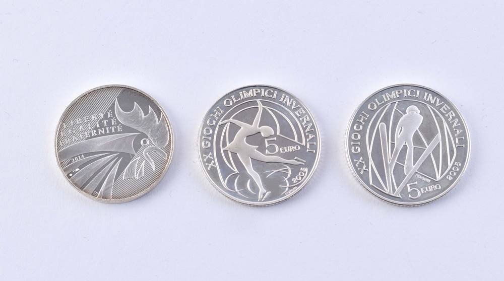 3 Stück, 1x 10 Euro Frankreich 2014, 2x 5 Euro Italien 2005, PP