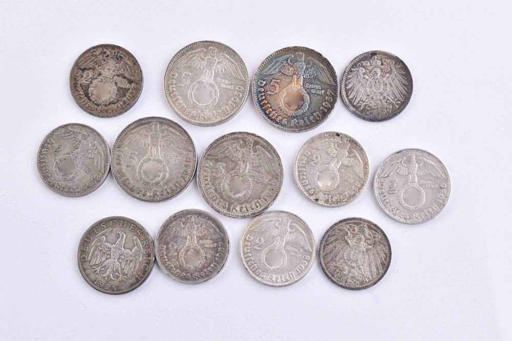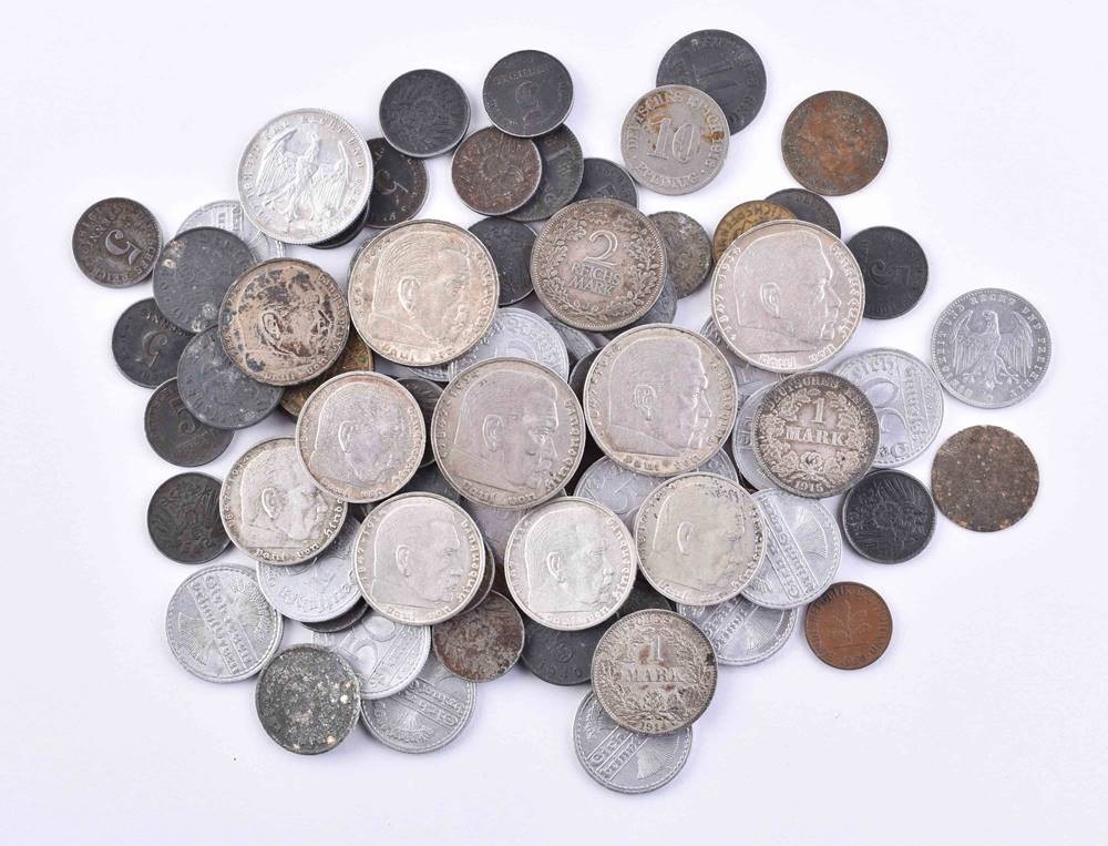 Münzposten deutsches Reich, dabei über 110 Gramm Feinsilber, ss- vz.