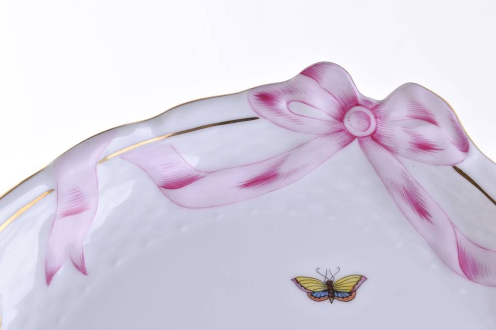 Porzellan, farbig und goldstaffiert, Dekor Rothschild, oval, 40 cm x 28 cm, mit Bodenmarke, 1. Wahl
