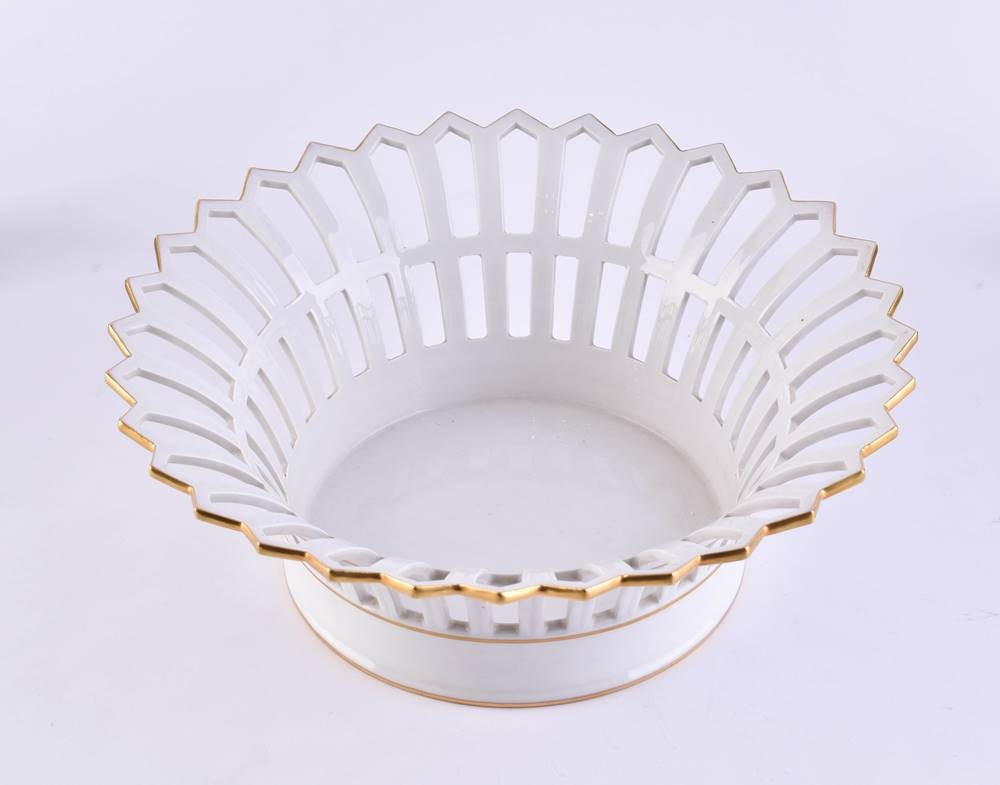 Porzellan, weiß mit Goldrand, H: 9,5 cm, Ø oberhalb 24 cm, blaue Zeptermarke, grüner Reichsapfel, 1. Wahl