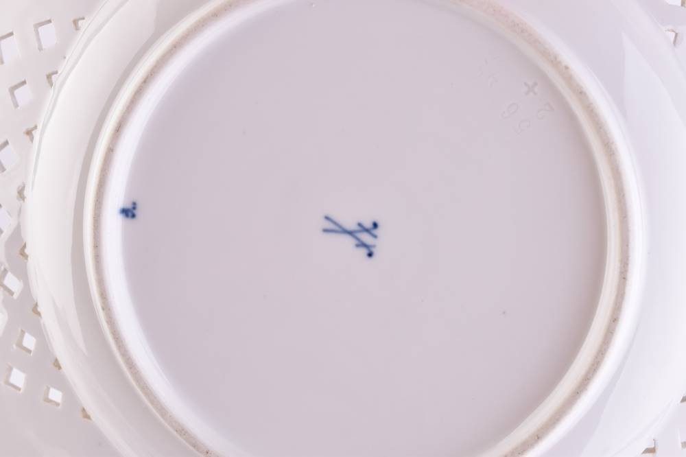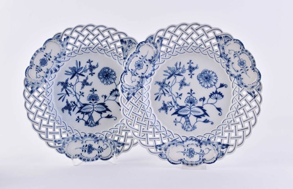 Porzellan, Dekor Zwiebelmuster, mit Korbflechtrand, Schwertermarke, 1. Wahl, Ø 24 cm
